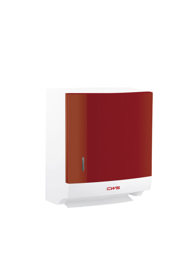 Podajnik składanych ręczników papierowych. Standardowe rozwiązanie do łazienek i pomieszczeń kuchennych. Przeznaczony dla ręczników trzy- lub dwuwarstwowych, składanych - różnego typu (C, Z lub W). Maksymalna liczba ręczników umieszczonych w pojemniku to 300 sztuk. Podajnik zalecany jako drugie, uzupełniające lub rezerwowe źródło ręcznika.